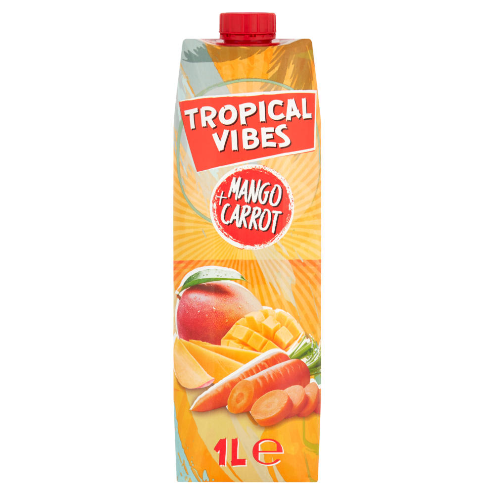 TropicalVibes Mango & Carrot 1 L is a vibrant juice blend that combines the sweet, juicy flavour of ripe mango with the natural earthiness of carrot. It delivers a smooth, refreshing taste with a rich fruitiness balanced by subtle vegetal notes, making it a delicious, wholesome drink that’s perfect chilled on its own or with meals.